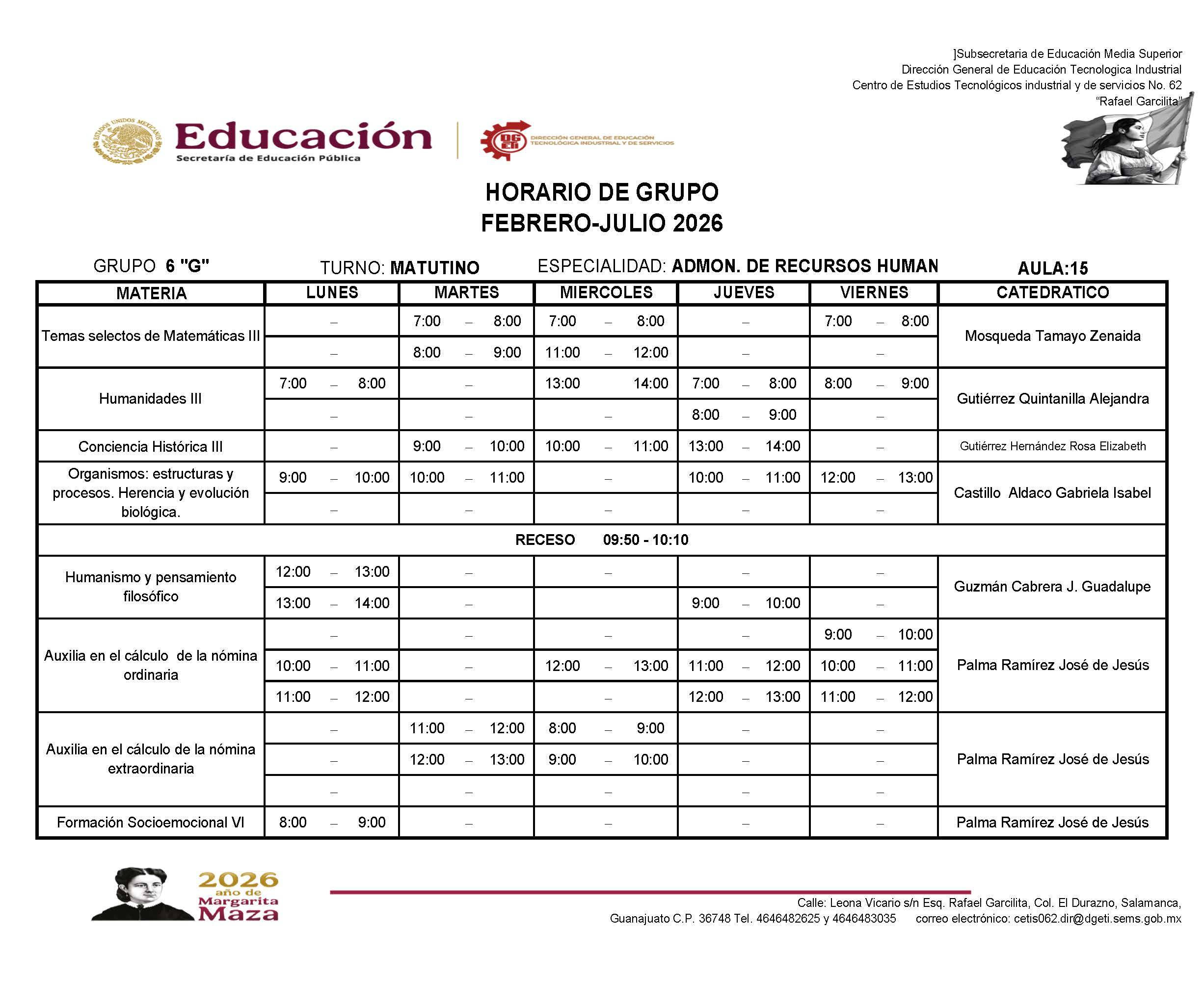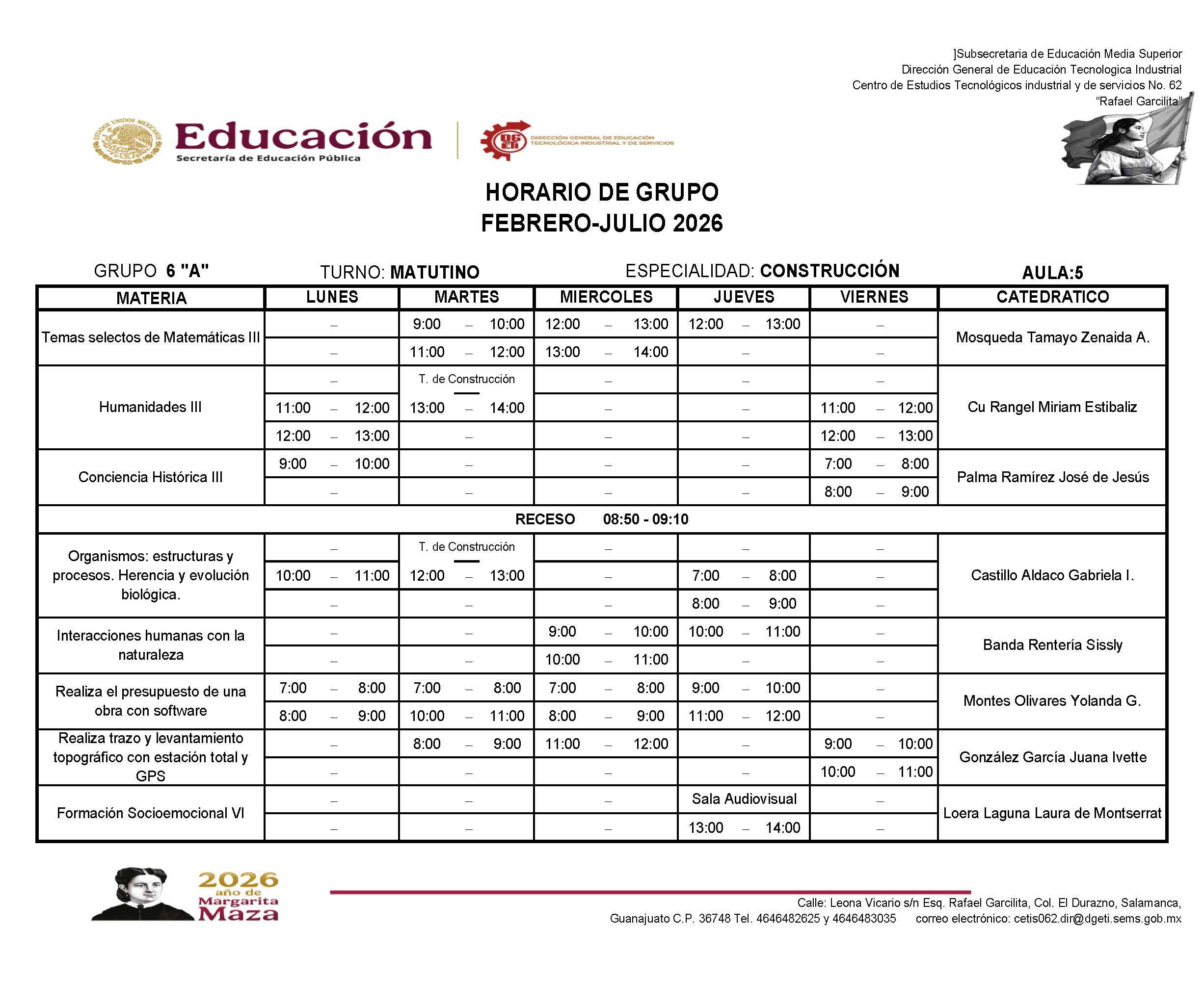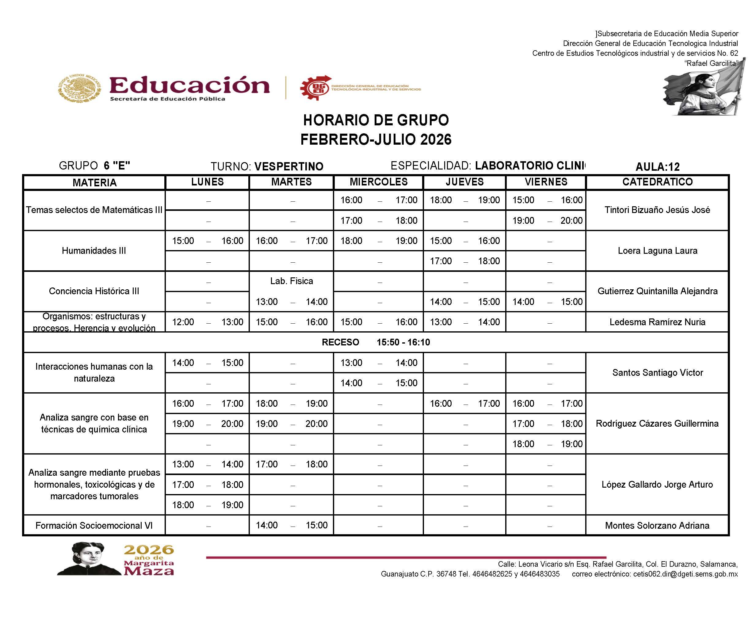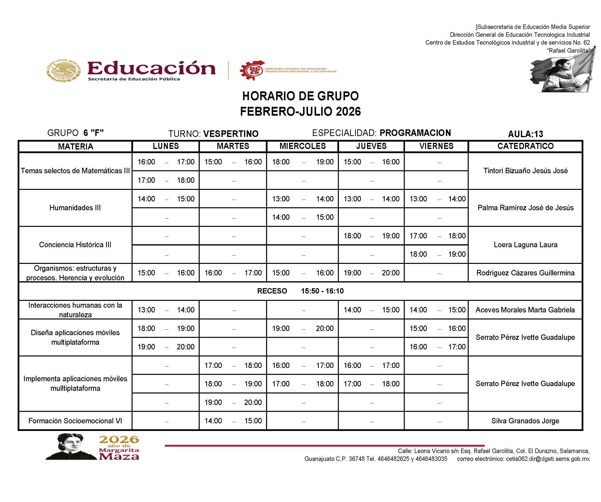 → Haz clic aquí para descargar el horario de 6A
