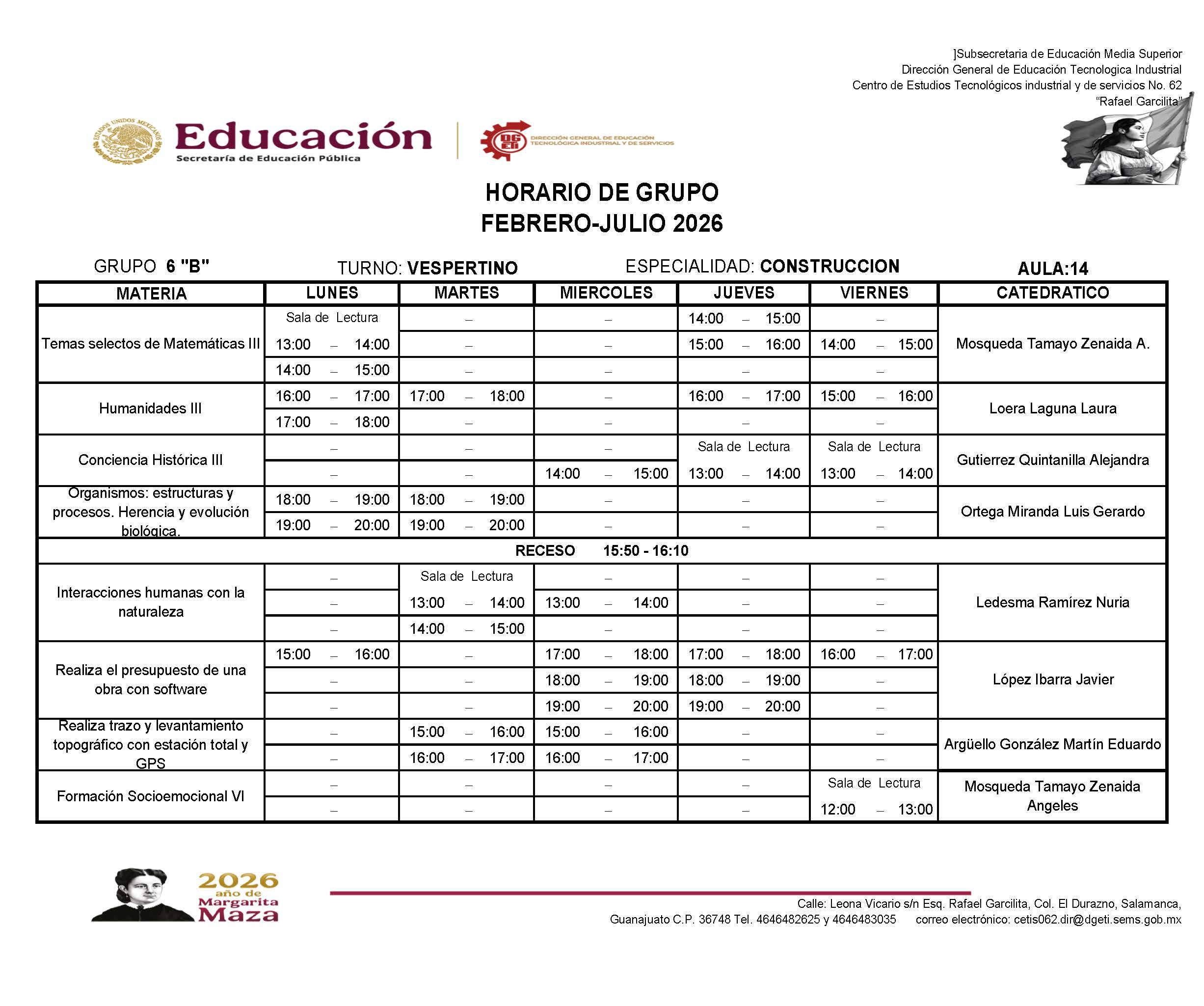 → Haz clic aquí para descargar el horario de 6B