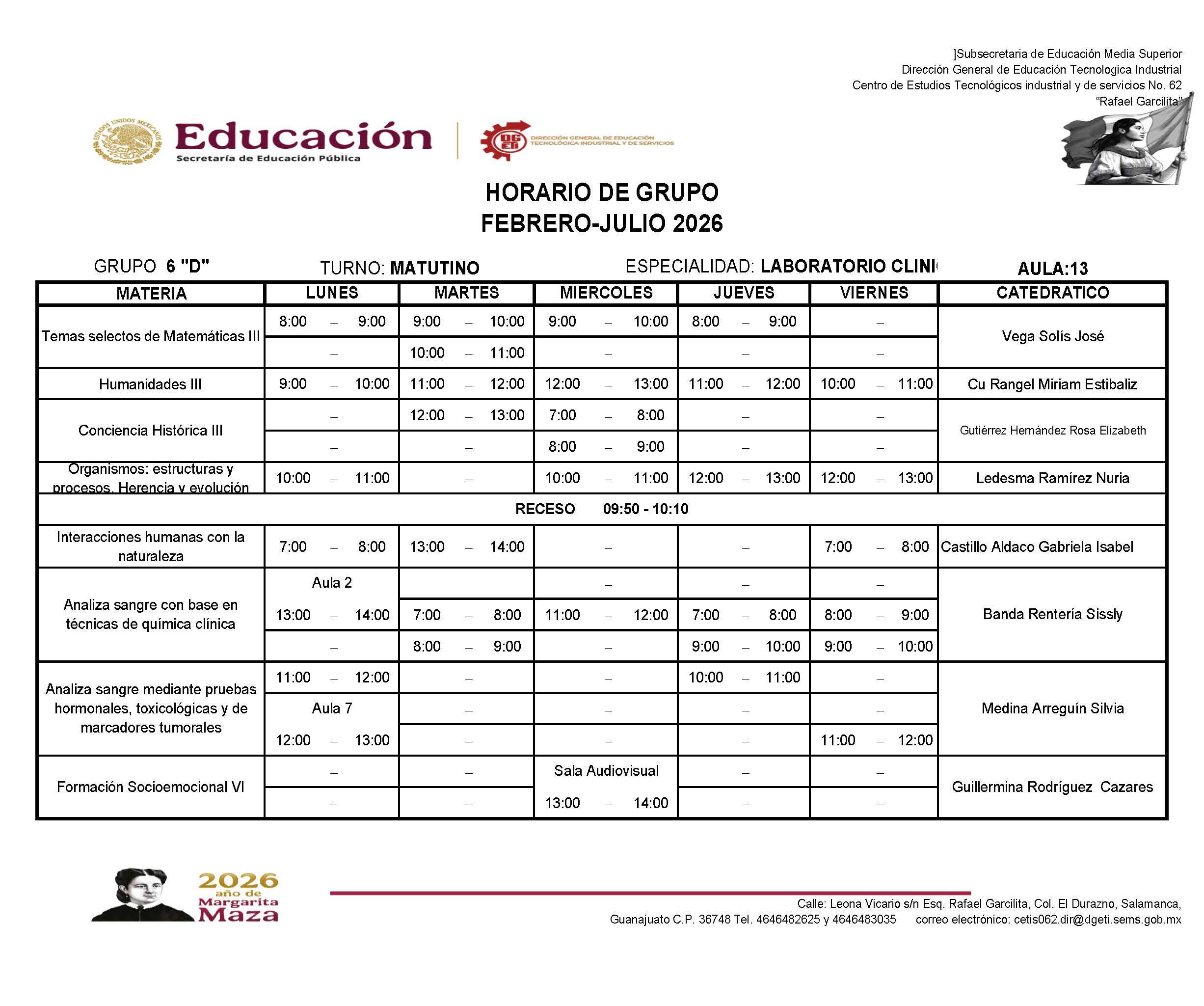 → Haz clic aquí para descargar el horario de 6D