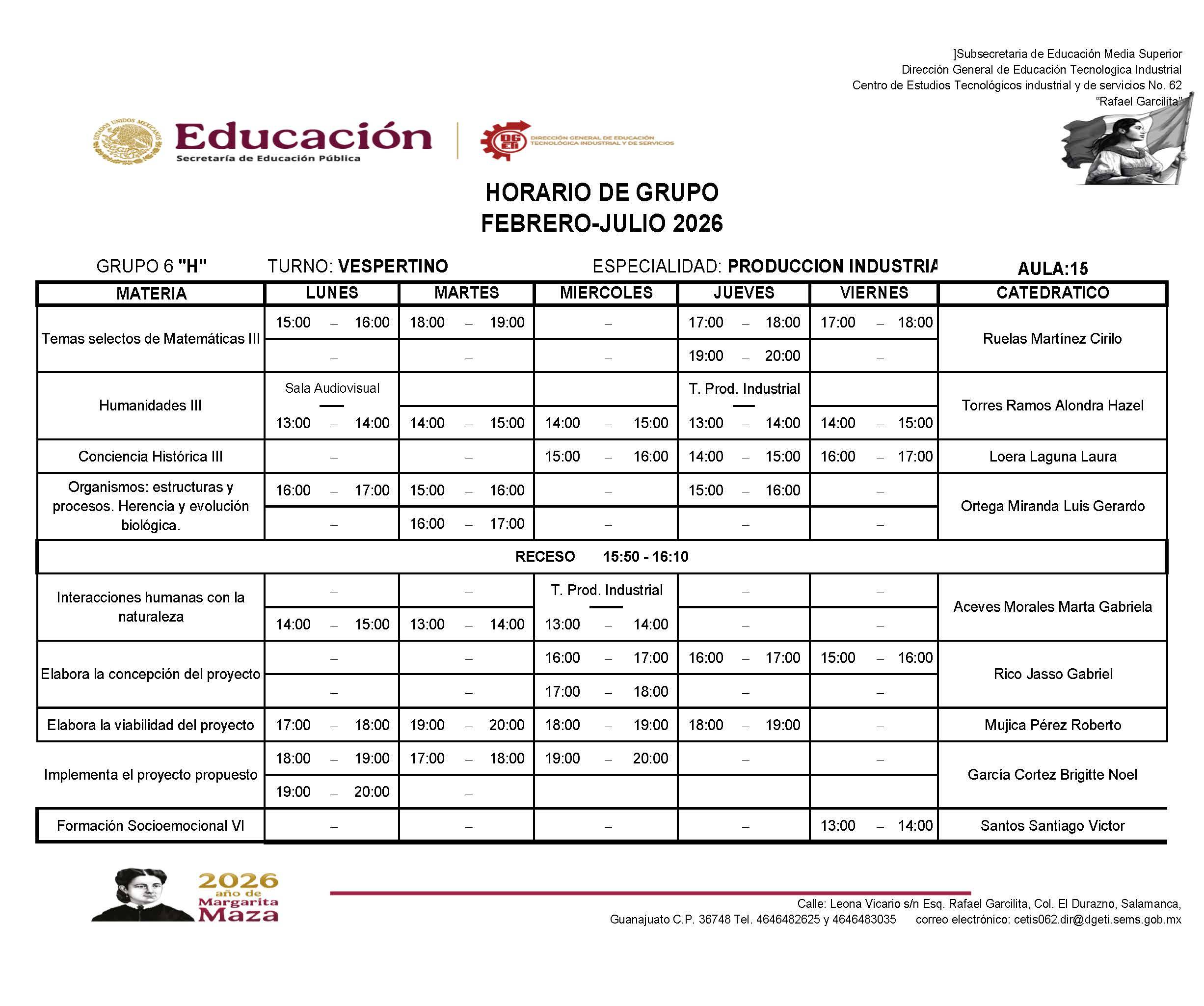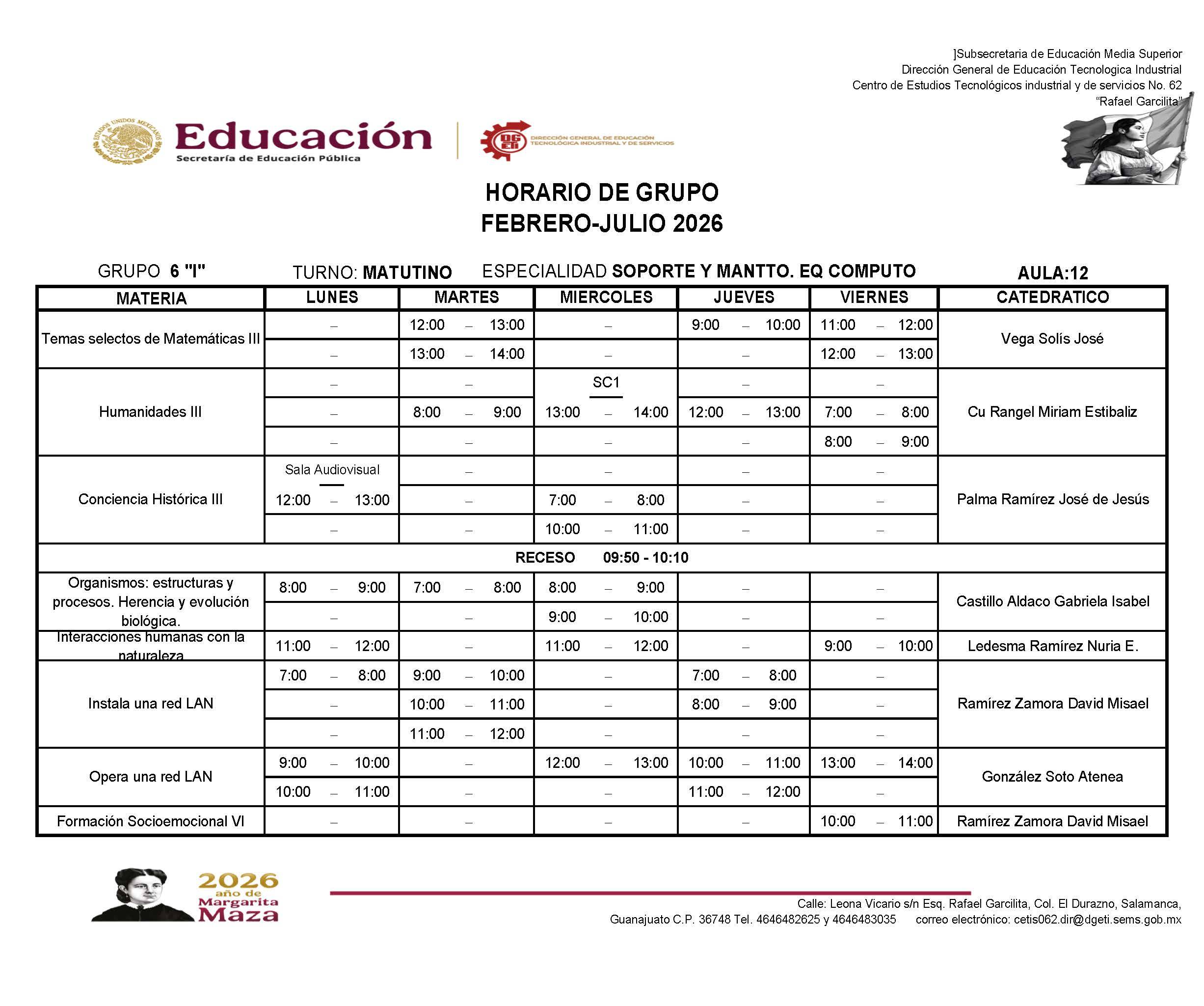 → Haz clic aquí para descargar el horario de 6I