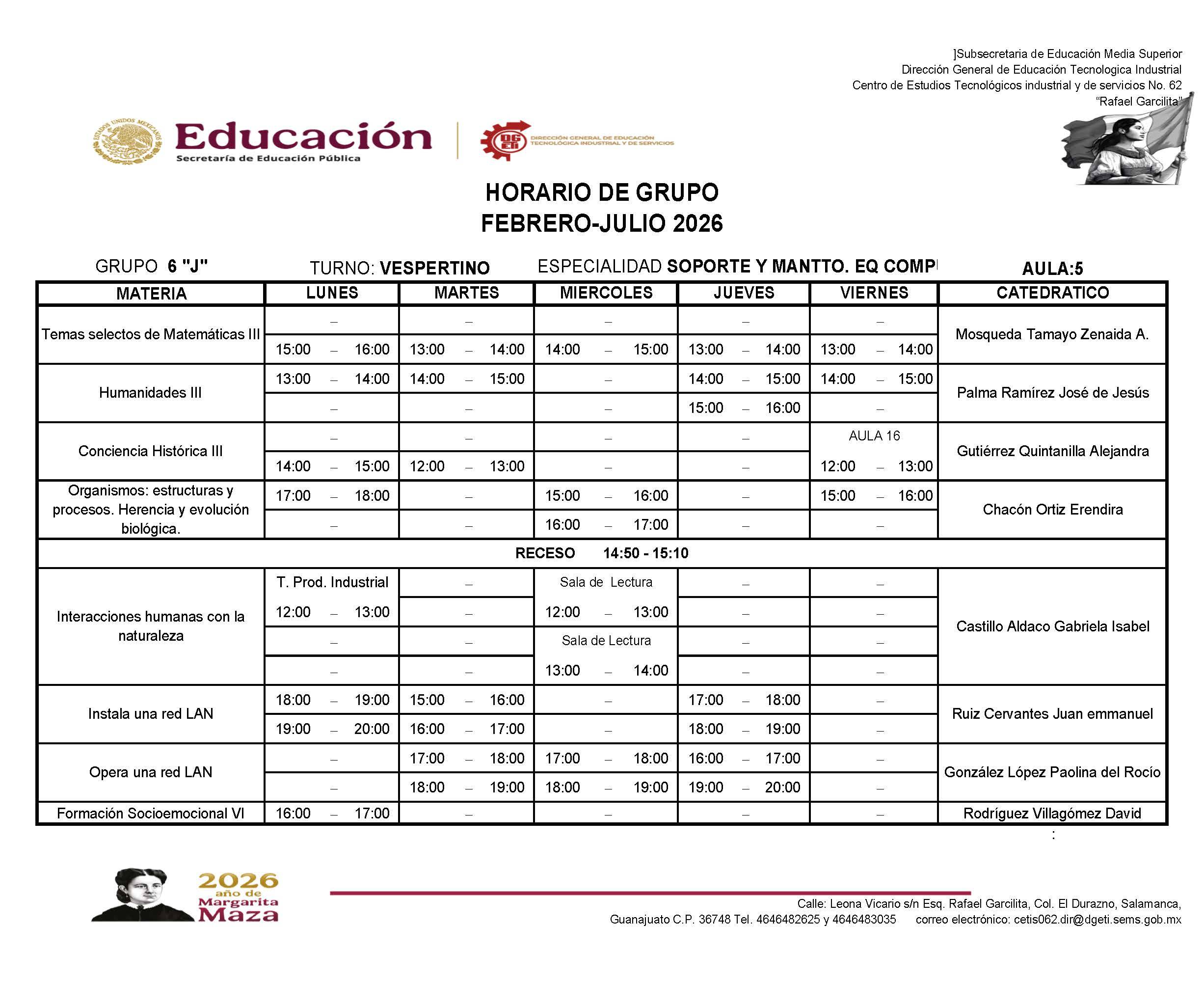 → Haz clic aquí para descargar el horario de 6J
