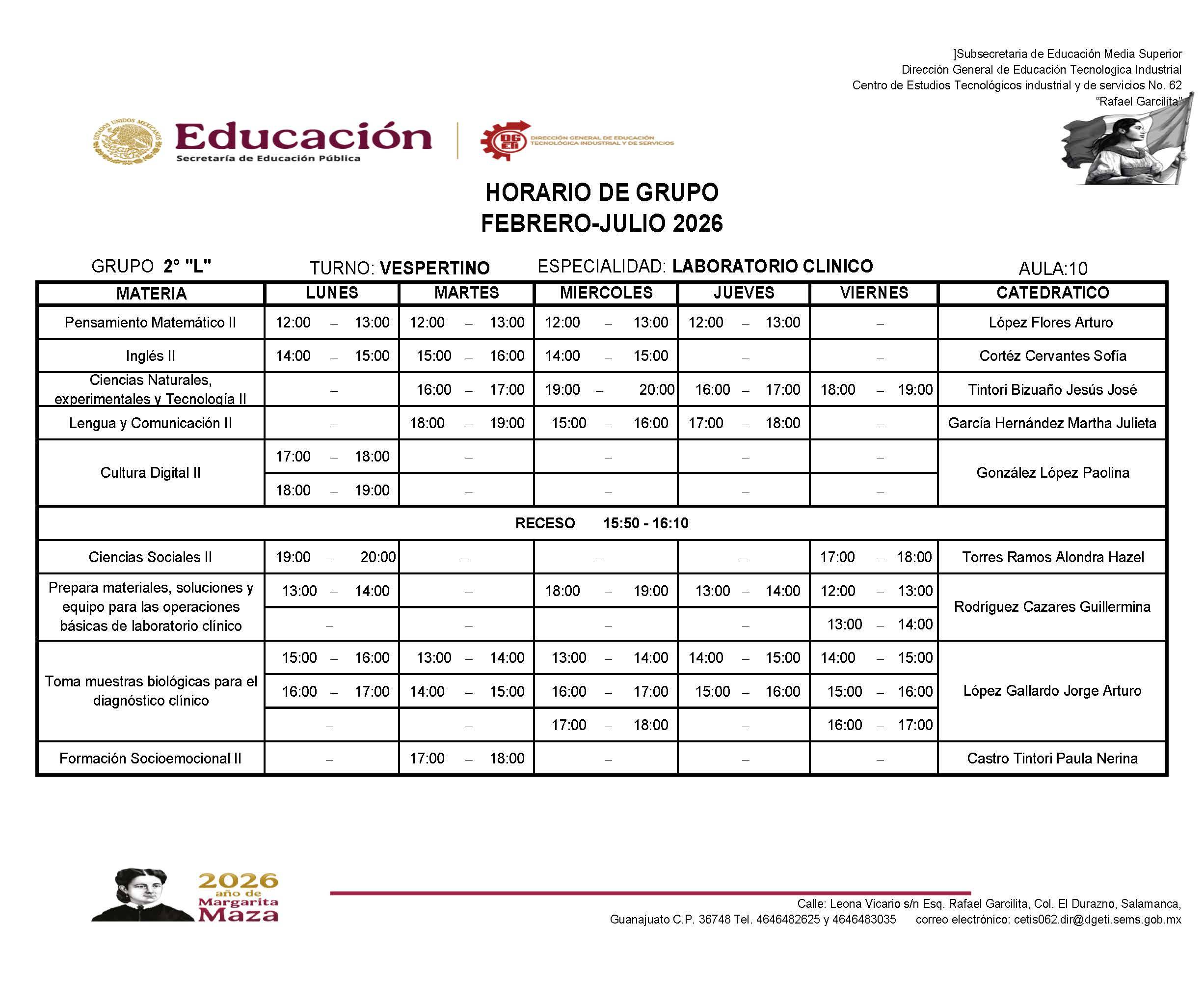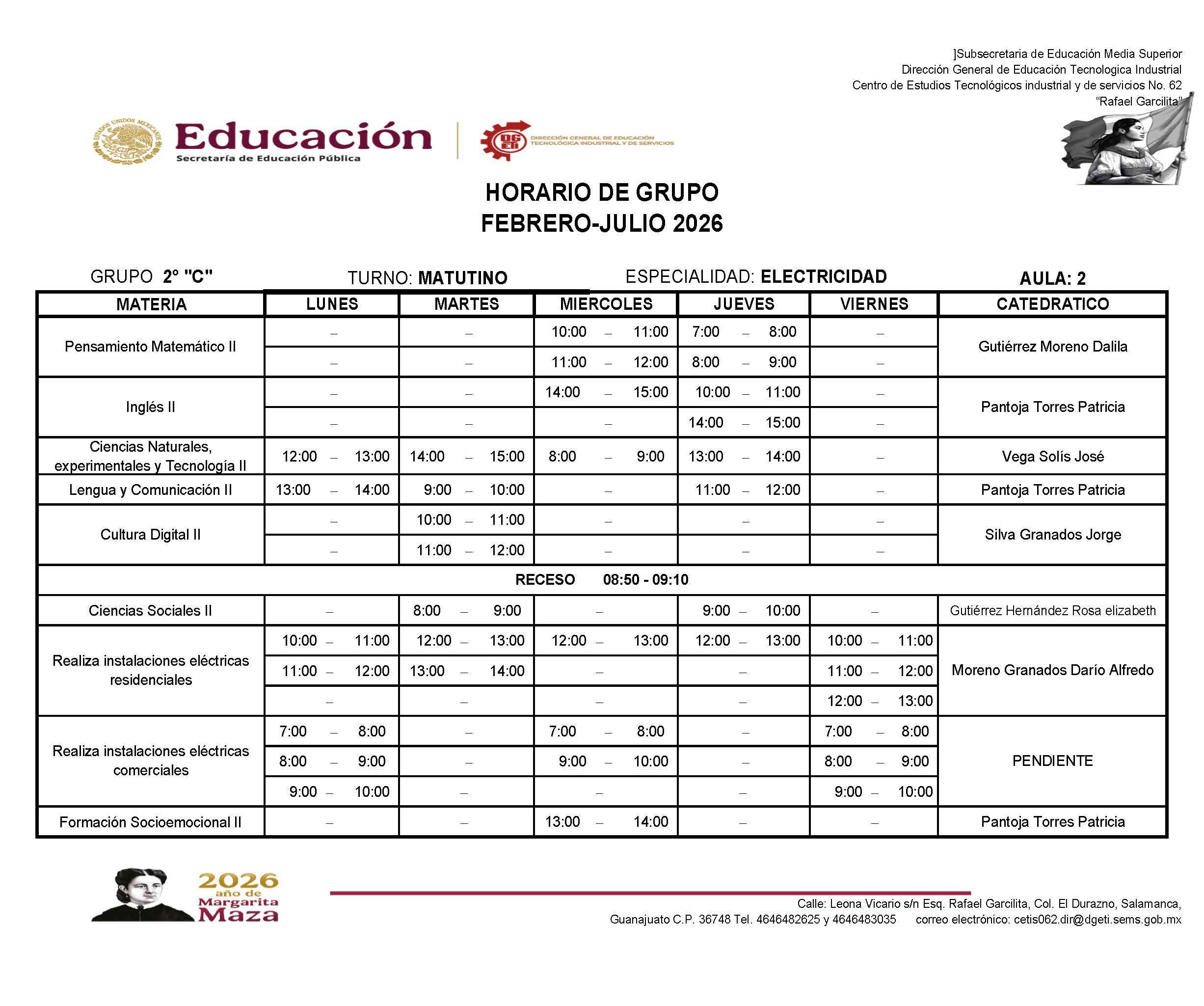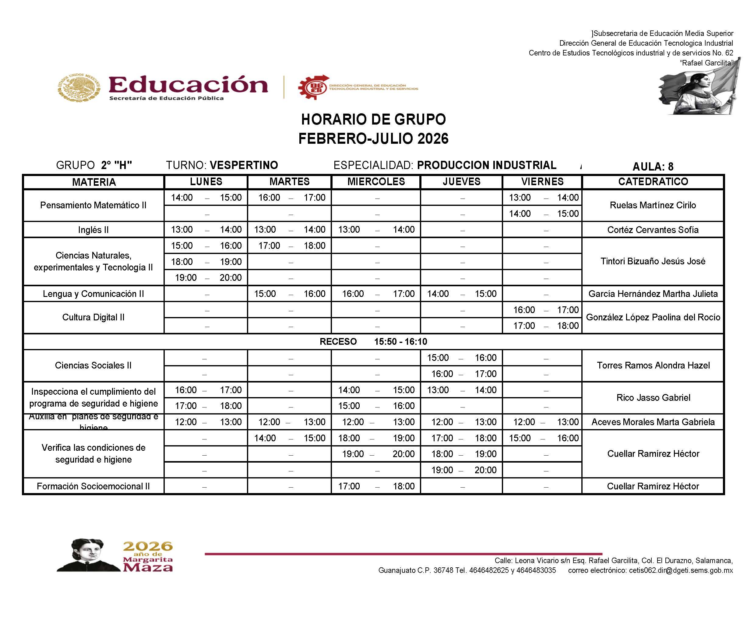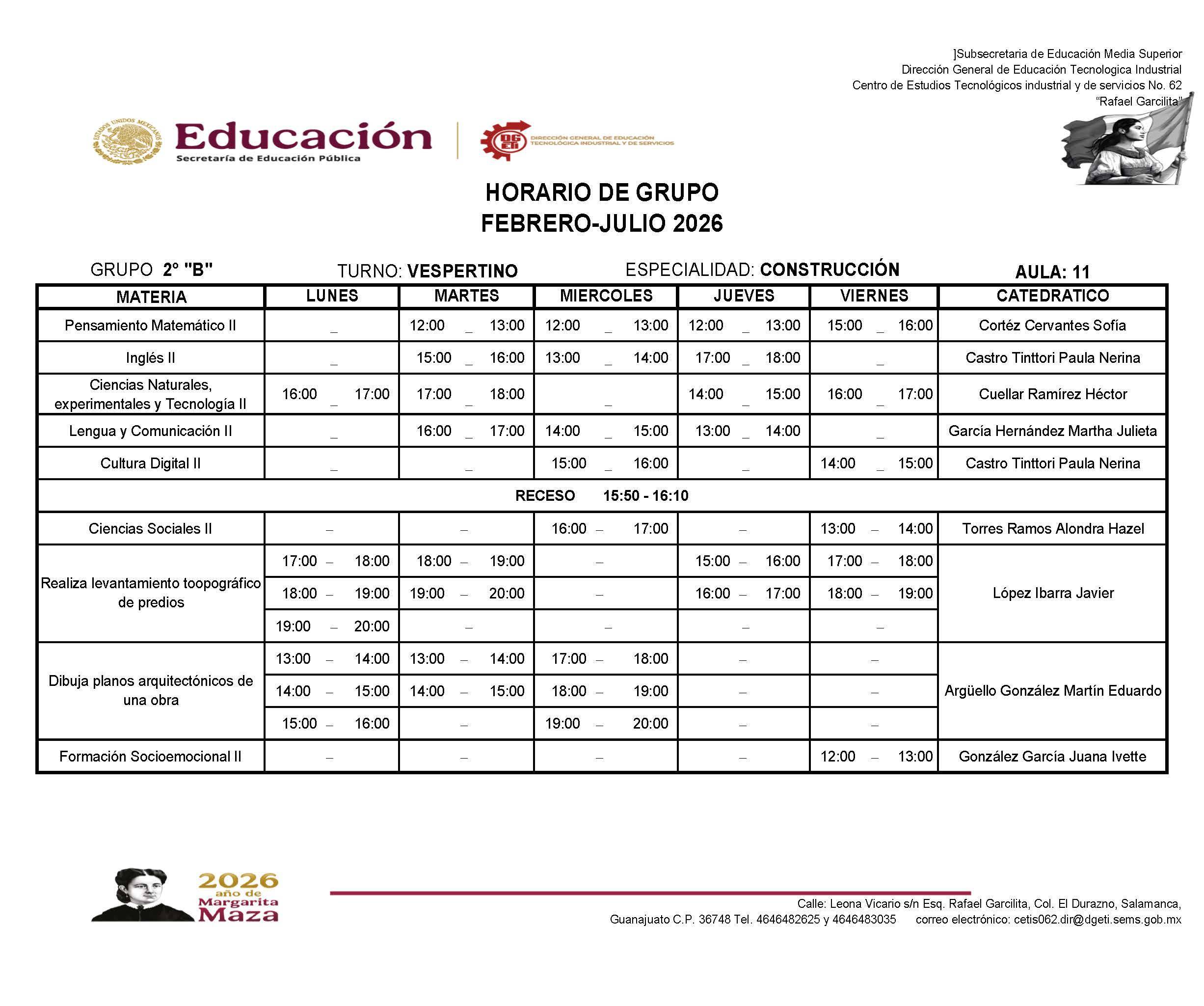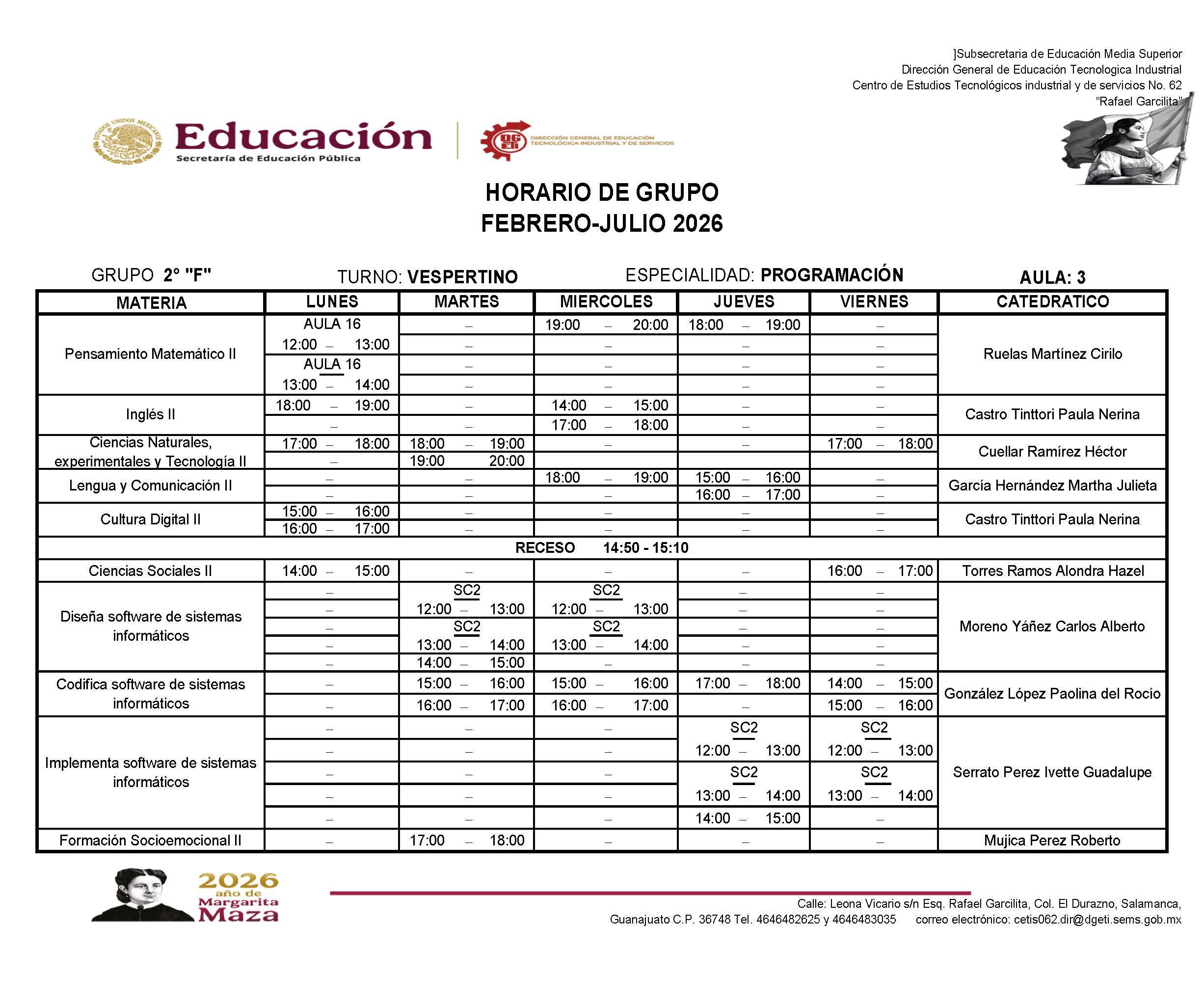 Horarios de 2do Semestre Febrero-Julio 2026