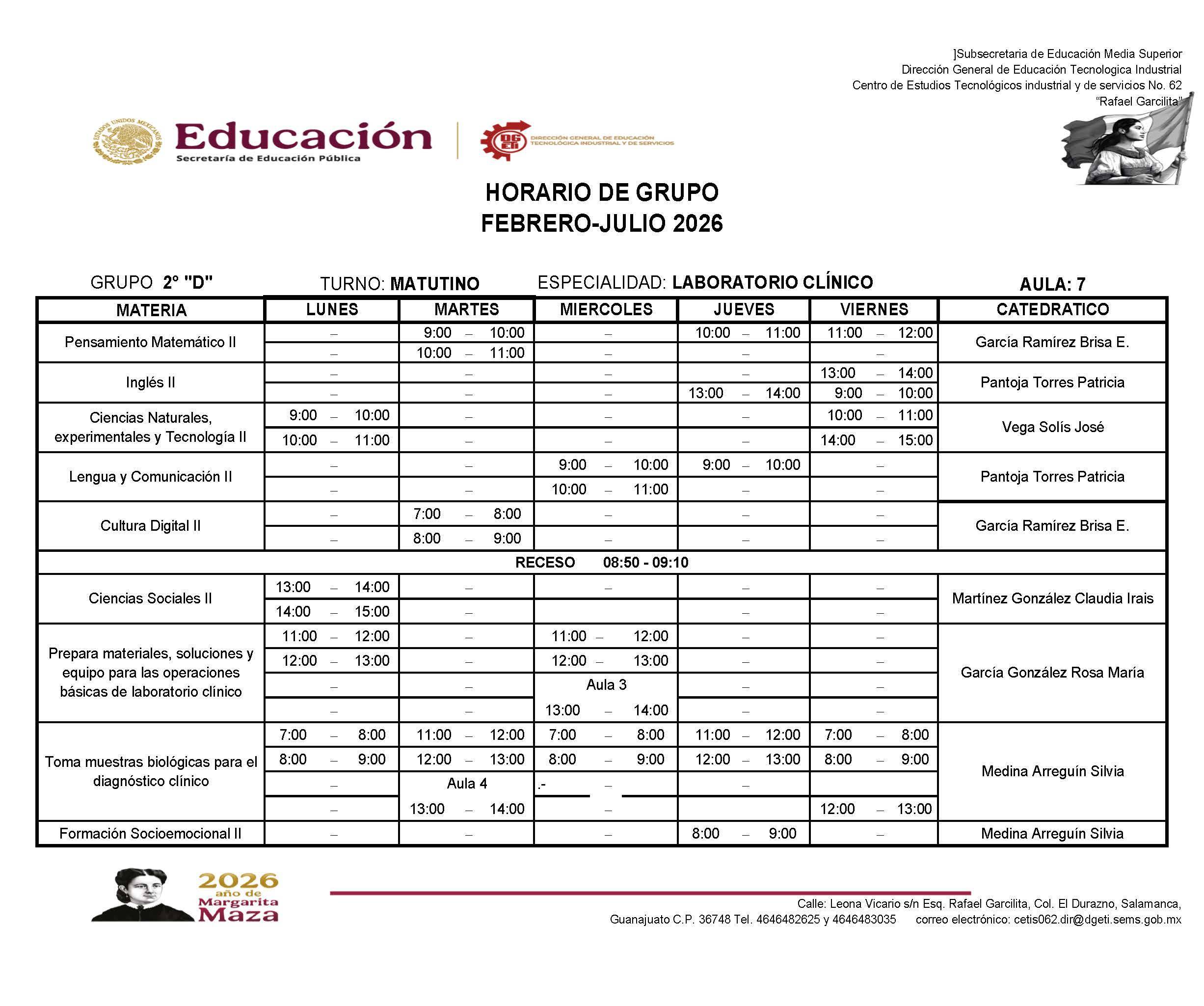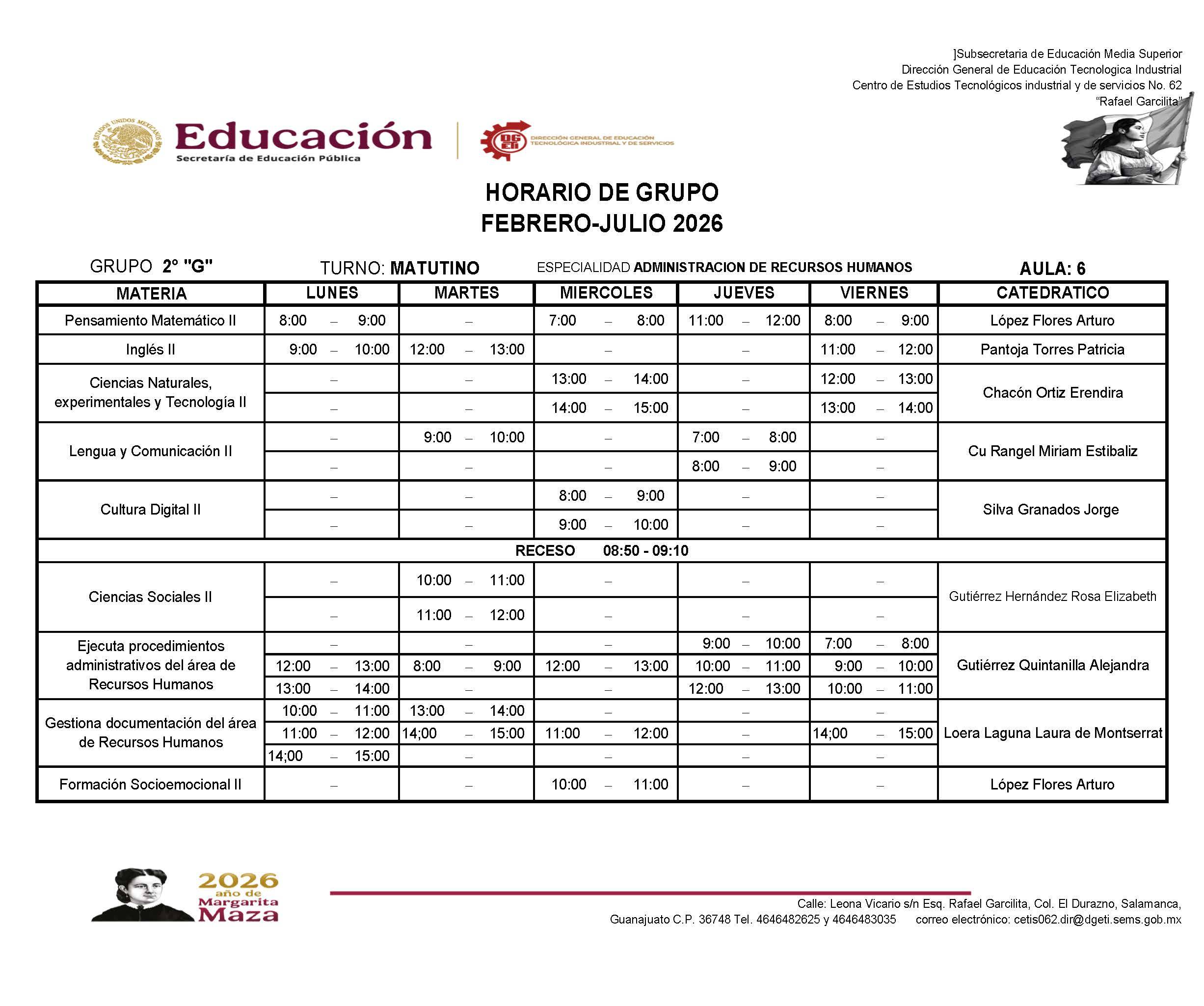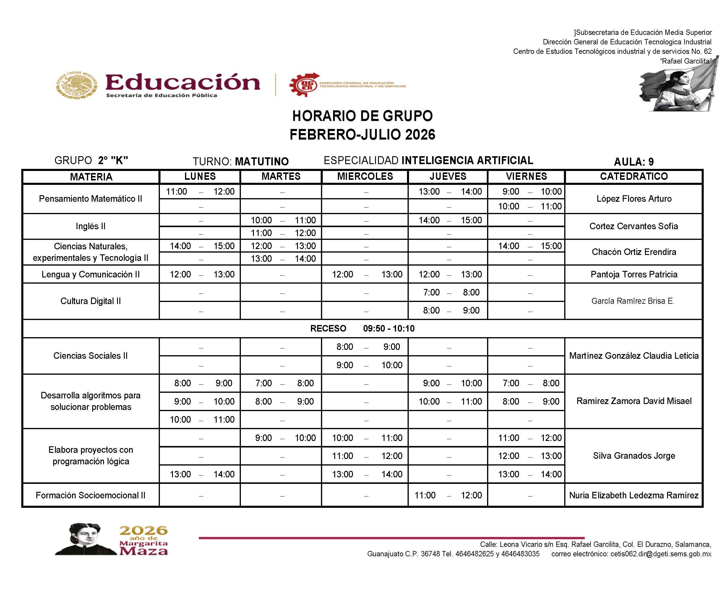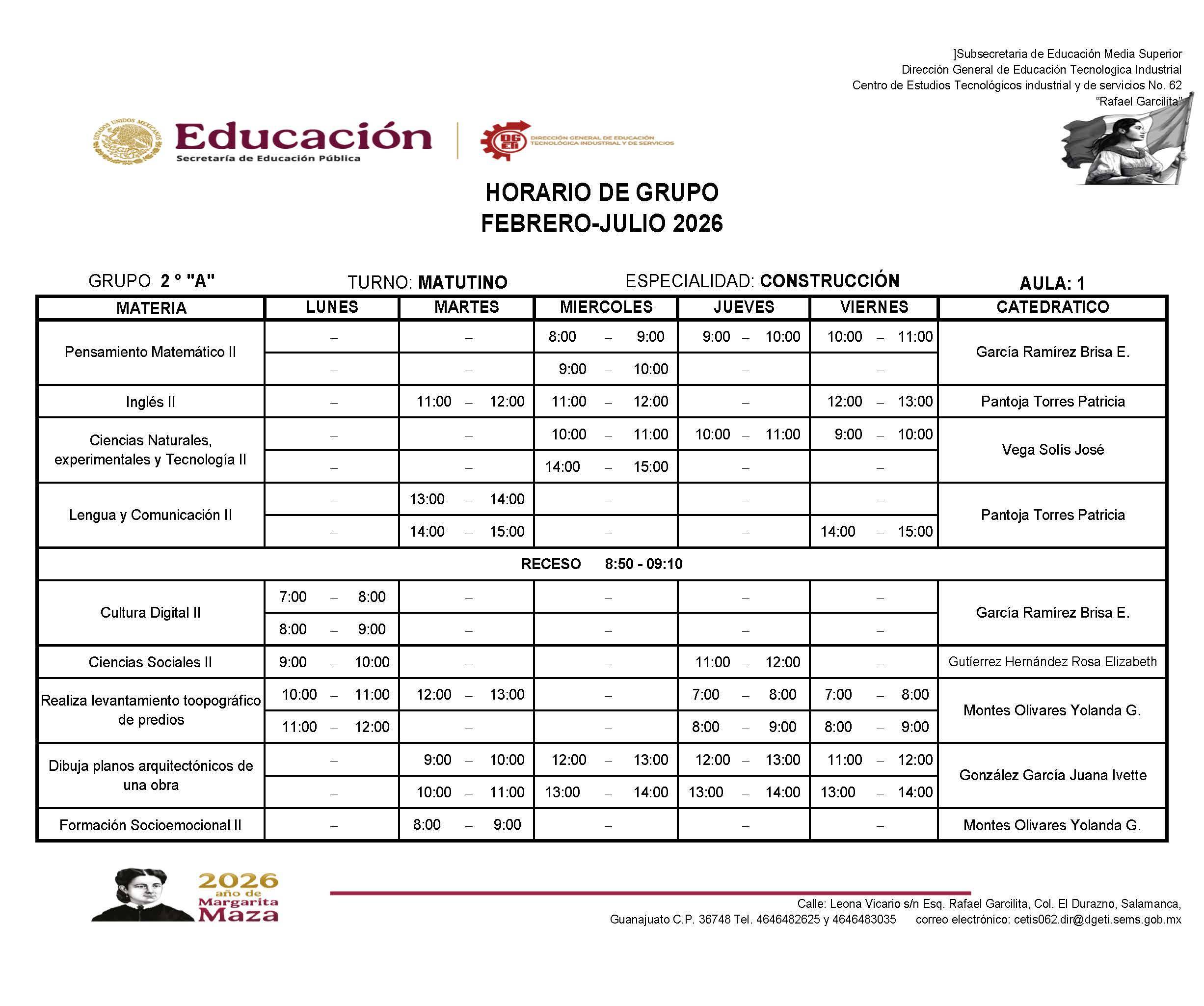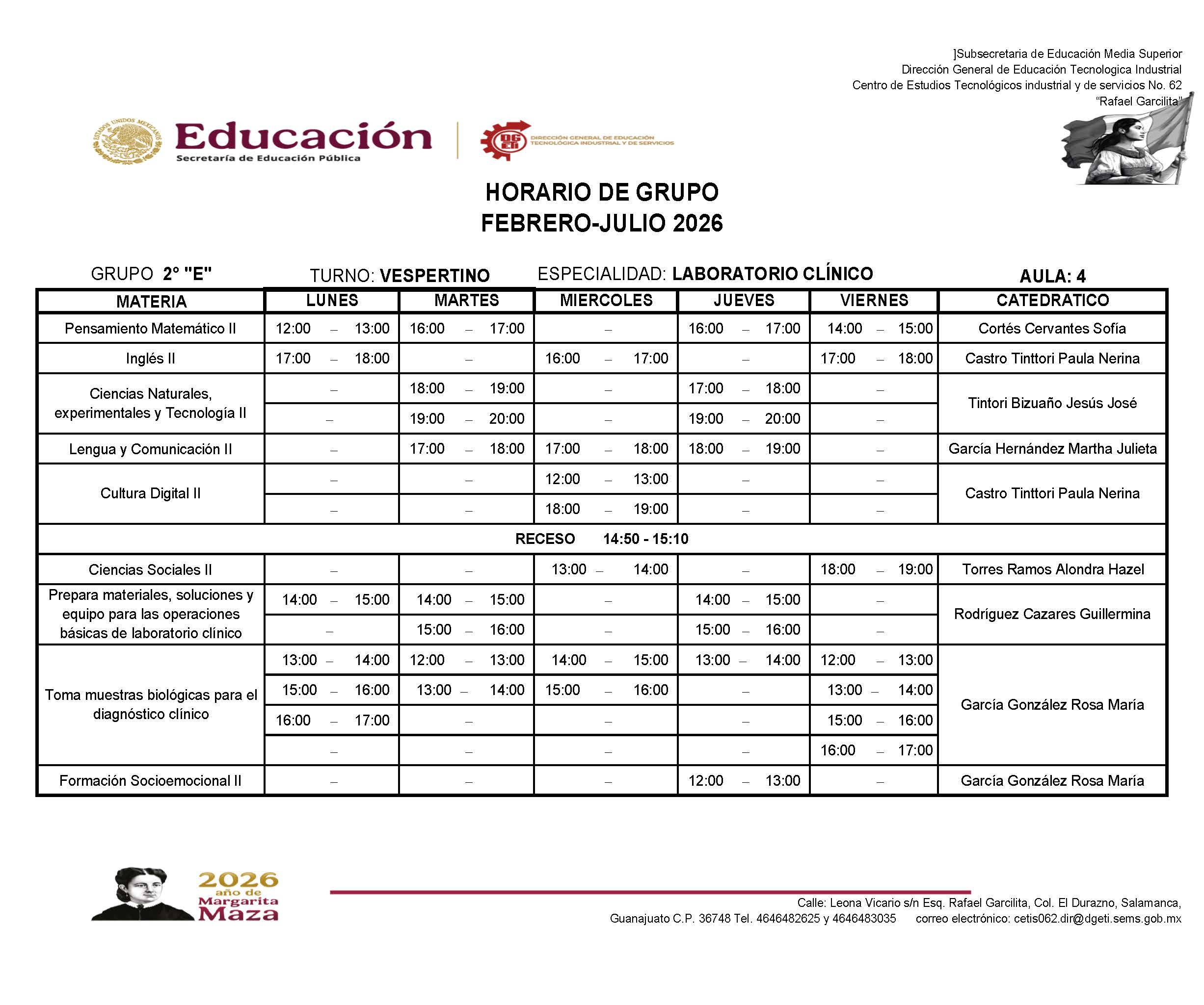 Horarios de 2do Semestre Febrero-Julio 2026